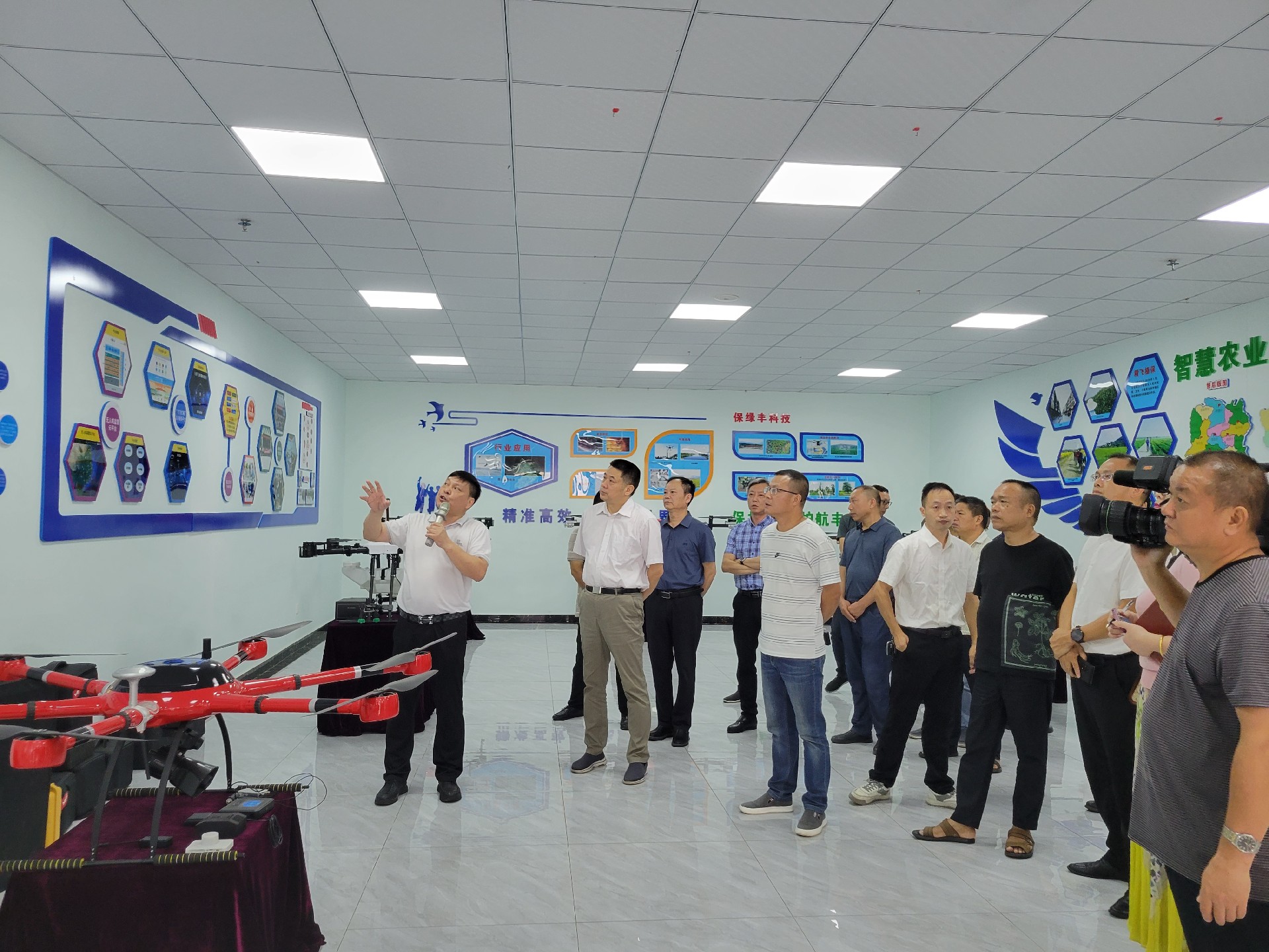 在精飛智能展廳,精飛集團(tuán)董事長龍永堅(jiān)向調(diào)研組一行匯報(bào)了企業(yè)生產(chǎn)經(jīng)營、技術(shù)研發(fā)、產(chǎn)品銷售等情況,其中重點(diǎn)講解了無人機(jī)數(shù)字農(nóng)業(yè)服務(wù)應(yīng)用示范建設(shè)項(xiàng)目及自主開發(fā)的全國首個(gè)北斗+無人機(jī)數(shù)字農(nóng)業(yè)綜合應(yīng)用與公共服務(wù)平臺運(yùn)營情況。
