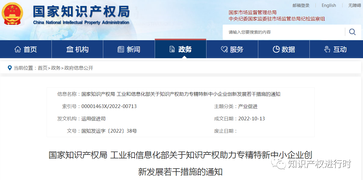國(guó)家知識(shí)產(chǎn)權(quán)局 工業(yè)和信息化部關(guān)于知識(shí)產(chǎn)權(quán)助力專(zhuān)精特新中小企業(yè)創(chuàng)新發(fā)展若干措施的通知