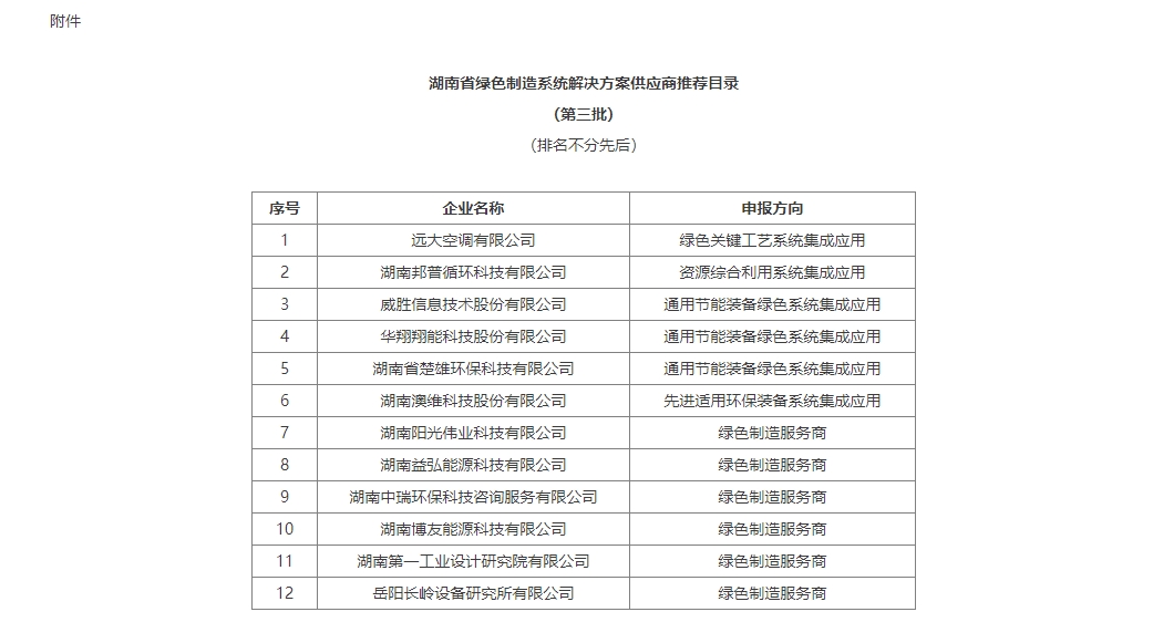 附件:湖南省綠色制造系統(tǒng)解決方案供應(yīng)商推薦目錄(第三批)