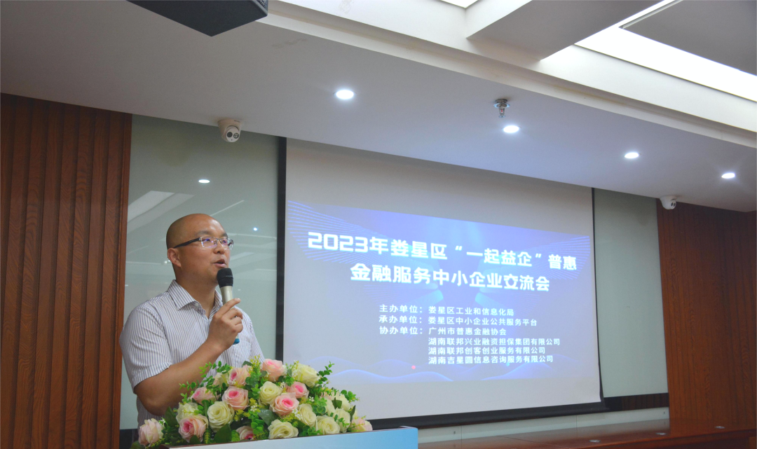 為深入貫徹落實工信部“一起益企”中小企業(yè)服務(wù)行動,進一步加強中小微企業(yè)金融基礎(chǔ)知識的了解,提升對金融產(chǎn)品和服務(wù)的認知能力,著力促進制造業(yè)和中小微企業(yè)融資,助力企業(yè)高質(zhì)量發(fā)展,4月21日,由婁星區(qū)工業(yè)和信息化局主辦,婁星區(qū)中小企業(yè)公共服務(wù)平臺承辦,廣州市普惠金融協(xié)會、湖南聯(lián)邦興業(yè)融資擔(dān)保集團有限公司等服務(wù)機構(gòu)協(xié)辦的2023年婁星區(qū)“一起益企”普惠金融服務(wù)中小企業(yè)交流會在吉星金融大廈六樓舉行。