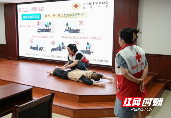 本次培訓(xùn)分為理論知識(shí)講解和實(shí)際操作兩個(gè)環(huán)節(jié),特邀婁底職業(yè)技術(shù)學(xué)院醫(yī)學(xué)部臨床醫(yī)學(xué)院院長(zhǎng)譚芳主講。譚芳對(duì)心肺復(fù)蘇、氣道梗塞急救法和AED機(jī)使用、海姆立克急救法,災(zāi)害事故、意外傷害逃生避險(xiǎn)、常見(jiàn)急癥的現(xiàn)場(chǎng)救護(hù)原則等進(jìn)行了詳細(xì)的講解。