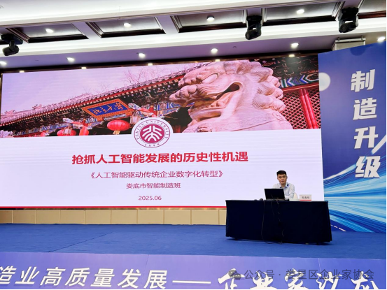 易海明主任以“制造業(yè)如何搶抓人工智能發(fā)展的歷史性機(jī)遇”為題,從認(rèn)識人工智能模型,培育人工智能模型的迫切性,培育人工智能模型的戰(zhàn)略性要素,詳解人工智能模型培育案例和趨勢四個方面系統(tǒng)剖析了人工智能技術(shù)演進(jìn)脈絡(luò)及其與制造業(yè)融合的核心場景,結(jié)合國內(nèi)外標(biāo)桿案例,為在場企業(yè)家描繪了AI賦能研發(fā)設(shè)計、生產(chǎn)流程優(yōu)化、供應(yīng)鏈管理、質(zhì)量控制和精準(zhǔn)營銷的全鏈條圖景。互動環(huán)節(jié),企業(yè)家結(jié)合自身轉(zhuǎn)型痛點(diǎn)踴躍提問,易主任就技術(shù)選型、投入產(chǎn)出比、安全風(fēng)險等實(shí)際問題進(jìn)行了針對性解答,現(xiàn)場交流氣氛熱烈。