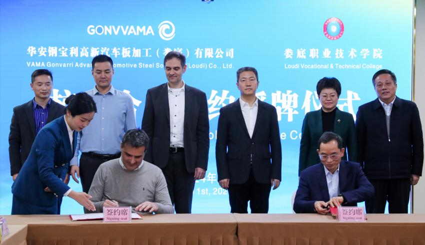 △2月1日,華安鋼寶利高新汽車板加工(婁底)有限公司(GONVVAMA)、婁底職業(yè)技術(shù)學(xué)院校企合作簽約授牌儀式舉行。