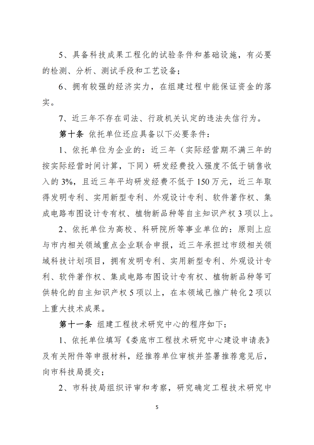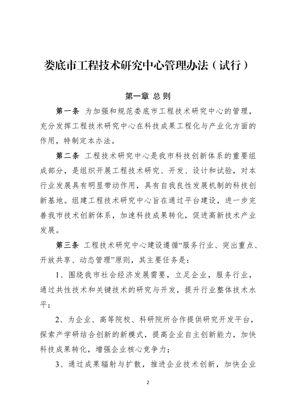 婁底市科學技術局關于印發(fā)《婁底市工程技術研究中心管理辦法(試行)》的通知