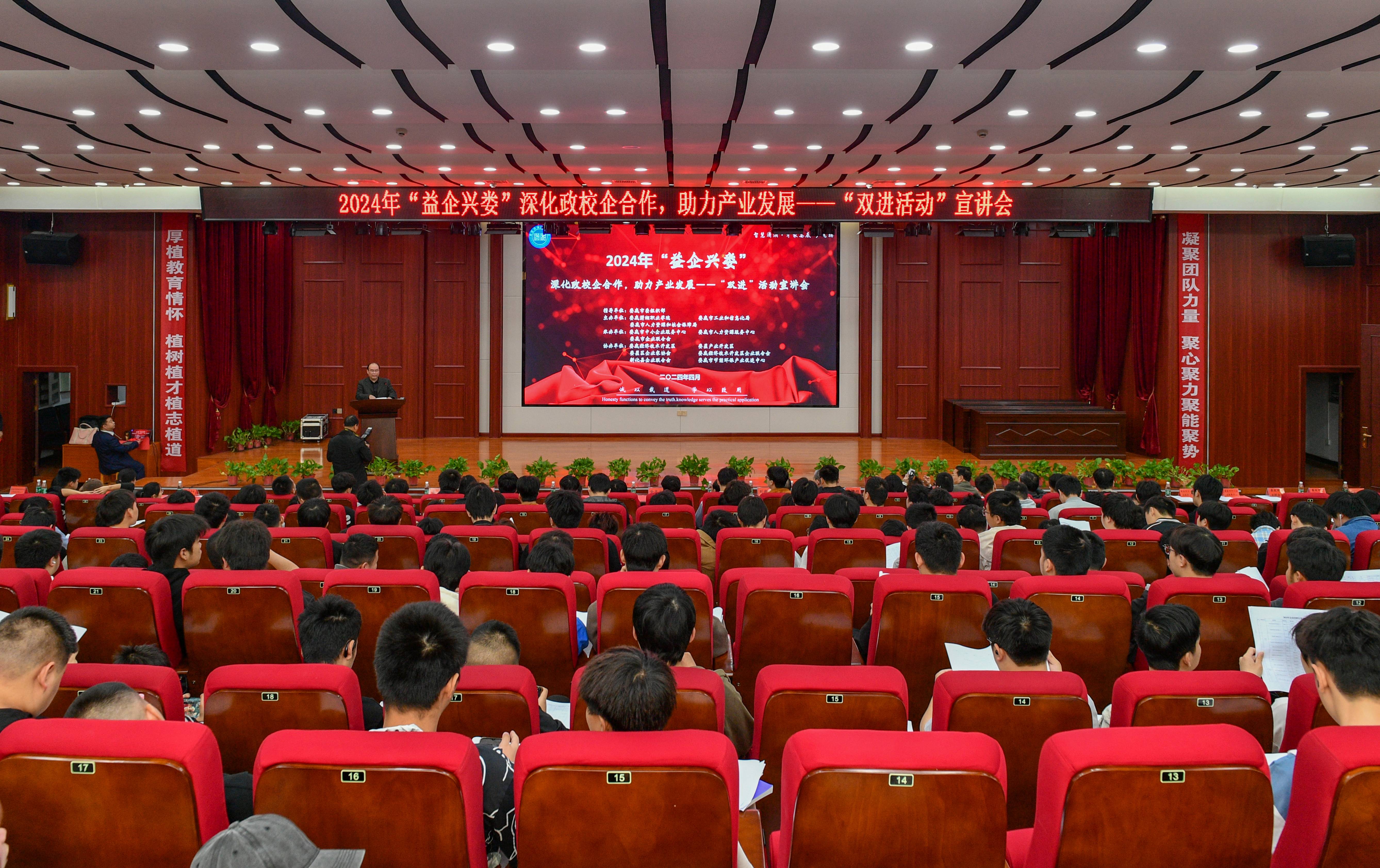 為深入推進校企人才供需對接,4月12日,婁底市2024年“益企興婁”深化政校企合作,助力產(chǎn)業(yè)發(fā)展——“雙進”活動宣講會走進婁底瀟湘職業(yè)學院。此次活動由婁底瀟湘職業(yè)學院、婁底市工業(yè)和信息化局、婁底市人力資源和社會保障局聯(lián)合主辦,婁底市中小企業(yè)服務中心、婁底市人力資源服務中心、婁底市企業(yè)聯(lián)合會承辦,婁底經(jīng)濟技術開發(fā)區(qū)管委會、婁星產(chǎn)業(yè)開發(fā)區(qū)、婁底經(jīng)濟技術開發(fā)區(qū)企業(yè)聯(lián)合會、新化縣企業(yè)聯(lián)合會、市節(jié)能環(huán)保產(chǎn)業(yè)促進中心協(xié)辦。市老領導余明庭出席活動。