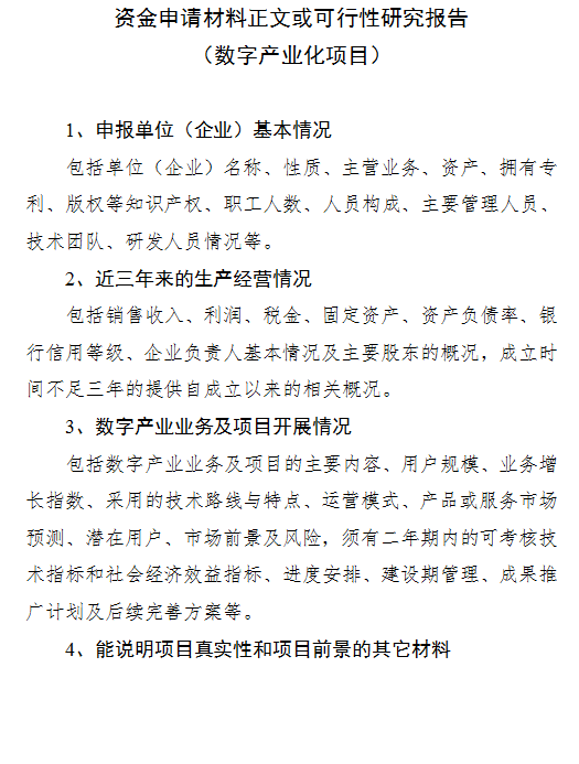 (1)數(shù)字產業(yè)化項目。主要支持互聯(lián)網、軟件和信息服務等服務業(yè)和電子信息制造、企業(yè)信息化建設等制造業(yè)企業(yè)項目;