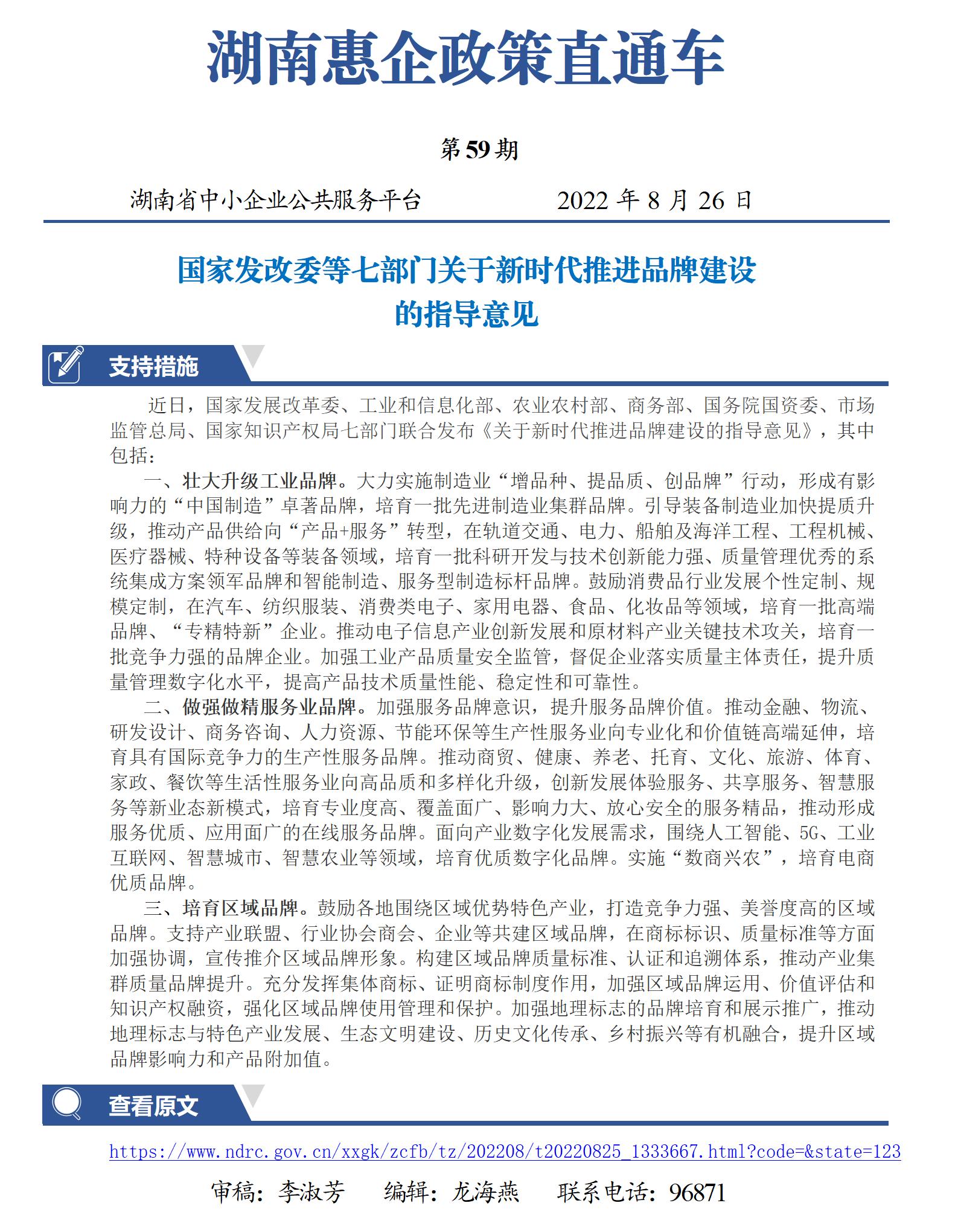 國家發(fā)改委等七部門關于新時代推進品牌建設的指導意見