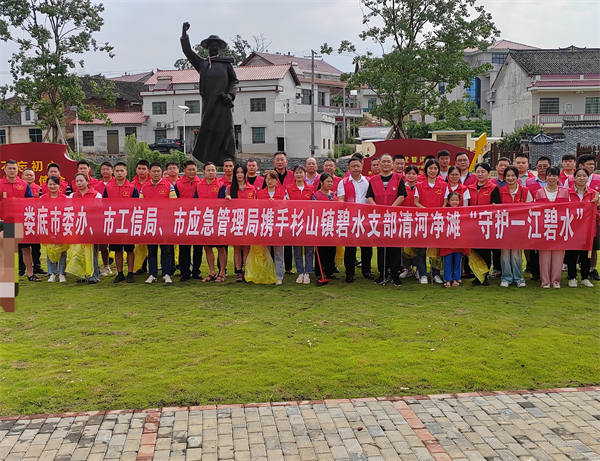 市委辦、市工信局、市應急管理局攜手杉山鎮(zhèn)碧水支部清河凈灘“守護一江碧水”